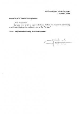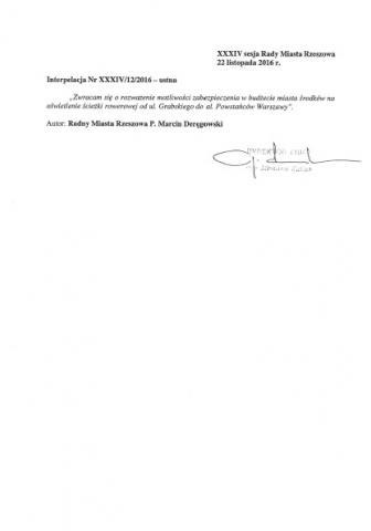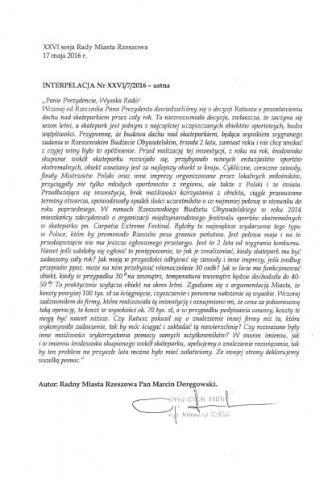 W trakcie majowej sesji, w swoim imieniu oraz środowiska skupionego wokół rzeszowskiego skateparku, zwróciłem się z apelem do Prezydenta o znalezienie rozwiązania problemu stałego zadaszenia. Wczoraj od Rzecznika Pana Prezydenta dowiedzieliśmy się bowiem o decyzji Ratusza o pozostawieniu dachu nad skateparkiem przez cały rok. Ta niezrozumiała decyzja, zwłaszcza, że zaczyna się sezon letni, a skatepark jest jednym z najczęściej uczęszczanych obiektów sportowych, budzi wątpliwości. Przypomnę, że budowa dachu nad skateparkiem, będąca wynikiem wygranego zadania w Rzeszowskim Budżecie Obywatelskim, trwała 2 lata, zamiast roku i nie chcę wnikać z czyjej winy było to opóźnienie. Przed realizacją tej inwestycji, z roku na rok, środowisko skupione wokół skateparku rozwijało się, przybywało nowych entuzjastów sportów ekstremalnych, obiekt uważany jest za najlepszy obiekt w kraju. Cykliczne, coroczne zawody, finały Mistrzostw Polski oraz inne imprezy organizowane przez lokalnych miłośników przyciągały nie tylko młodych sportowców z regionu, ale także z Polski i ze świata. Przedłużająca się inwestycja, brak możliwości korzystania z obiektu, ciągle przesuwane terminy otwarcia, spowodowały spadek ilości uczestników o co najmniej połowę w stosunku do roku poprzedniego. W ramach Rzeszowskiego Budżetu Obywatelskiego w roku 2014 mieszkańcy zdecydowali o organizacji międzynarodowego festiwalu sportów ekstremalnych w skateparku pn. Carpatia Extreme Festival. Byłoby to największe wydarzenie tego typu w Polsce, które by promowało Rzeszów poza granice państwa. Jest połowa maja i na to przedsięwzięcie nie ma jeszcze ogłoszonego przetargu. Jest to 2 lata od wygrania konkursu. Nawet jeśli udałoby się ogłosić to postępowanie, to jak je realizować, kiedy skatepark ma być zadaszony cały rok? Jak mają w przyszłości odbywać się zawody i inne imprezy, jeśli według przepisów ppoż. może na nim przebywać równocześnie 30 osób? Jak w lecie ma funkcjonować obiekt, kiedy w przypadku 30 st. na zewnątrz, temperatura wewnątrz będzie dochodziła do 40-50 st.? To praktycznie wyłącza obiekt na okres letni. Zgadzam się z argumentacją Miasta, że koszty powyżej 100 tys. zł za ściągnięcie, czyszczenie i ponowne nałożenie są wysokie. Wczoraj zadzwoniłem do firmy, która realizowała tę inwestycję i oznajmiono mi, że cena za jednorazową taką operację, to koszt w wysokości ok. 70 tys. zł, a w przypadku podpisania umowy, koszty te mogą być nawet niższe. Czy Ratusz pokusił się o znalezienie innej firmy niż ta, która wykonywała zadaszenie, tak by móc ściągać i zakładać tę nawierzchnię? Czy rozważane były inne możliwości wykorzystania pomocy samych użytkowników?